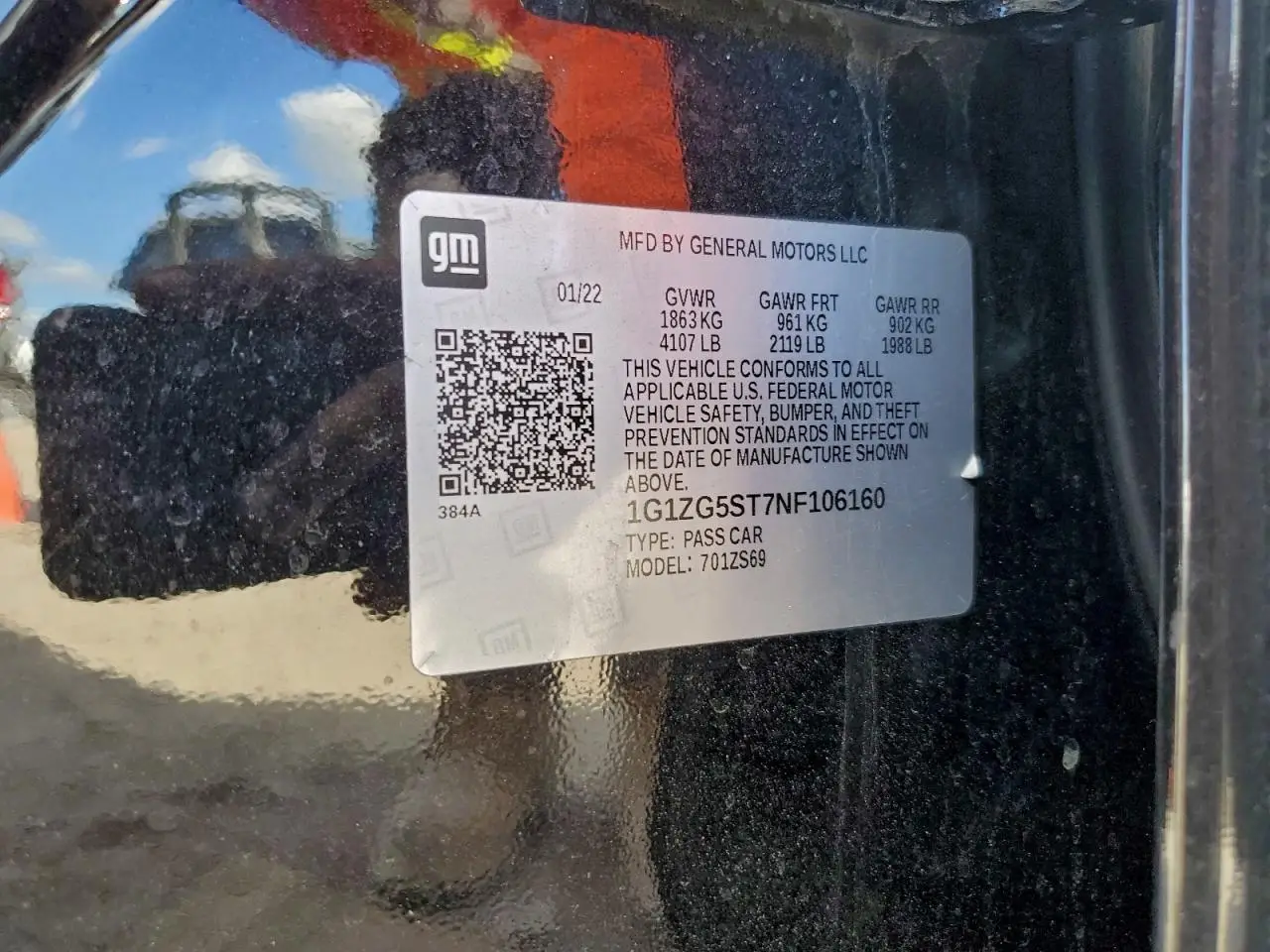 CHEVROLET MALIBU 2022 RS BLACK 1.5L 4 VIN: 1G1ZG5ST7NF106160