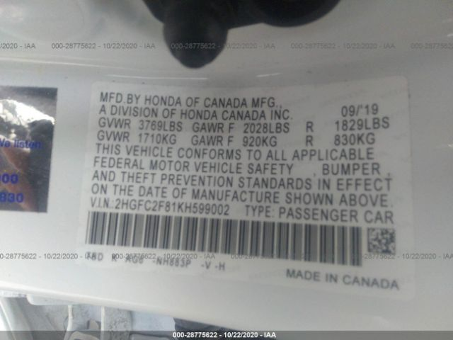 2HGFC2F81KH599002