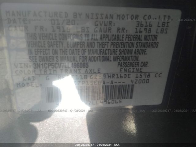 NISSAN KICKS 2020 1.6L DOHC 16V 4-Cylinder VIN: 3N1CP5CV7LL496065