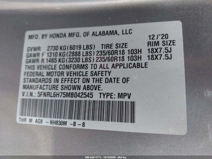 5FNRL6H75MB042545