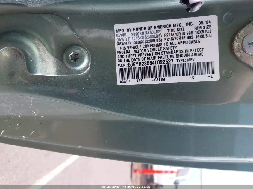 HONDA ELEMENT 2004 EX Green 2.4L I-4 DOHC, VVT, 160HP VIN: 5J6YH28584L022527