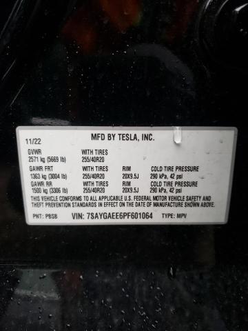 TESLA MODEL Y 2023 BLACK VIN: 7SAYGAEE6PF601064