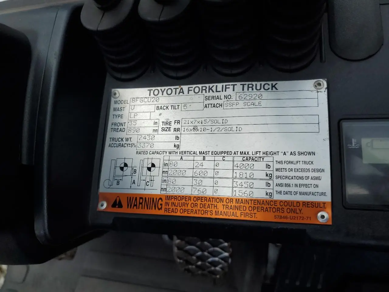 TOYOTA ALL OTHER 2014 FORKLIFT ORANGE VIN: 8FGCU2062920