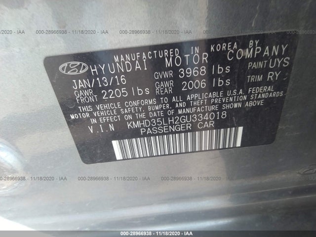 HYUNDAI ELANTRA GT 2016 STANDARD / STANDARD W/ STYLE PKG, STANDARD W/ TECH PKG 2.0L GDI I4 VIN: KMHD35LH2GU334018