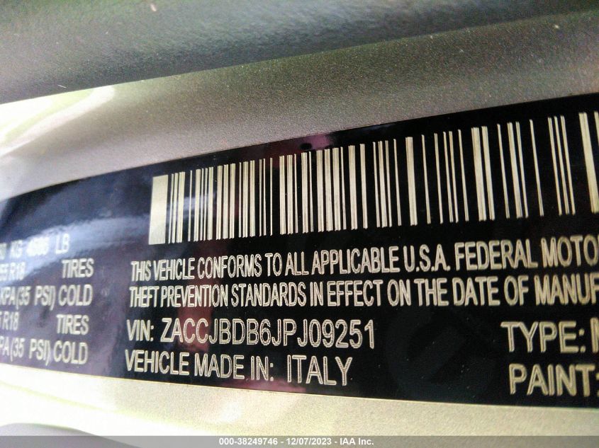 JEEP RENEGADE 2018 LIMITED 4X4 Silver 2.4L I4 ZERO EVAP M-AIR VIN: ZACCJBDB6JPJ09251
