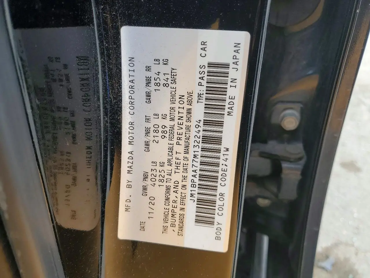 MAZDA 3 2021 MAZDA3 BLACK 2.0L 4 VIN: JM1BPAA77M1322494