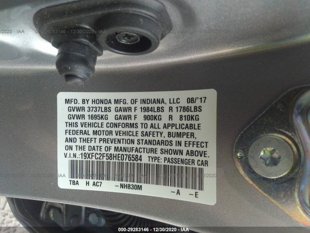 HONDA CIVIC SEDAN 2017 LX 2.0L I-4 DOHC 16-Valve i-VTEC VIN: 19XFC2F58HE076584