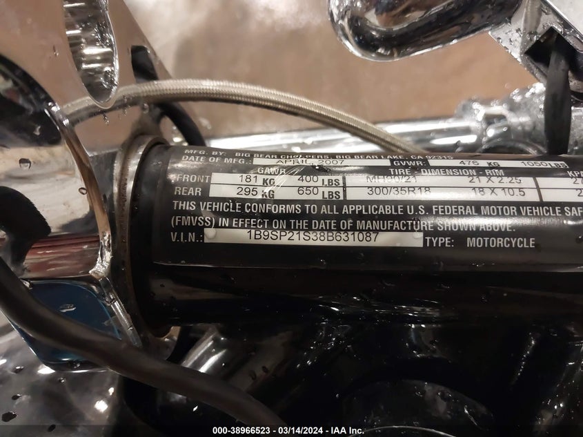 BIG BEAR CHOPPERS THE SLED 2008 Blue 2 VIN: 1B9SP21S38B631087