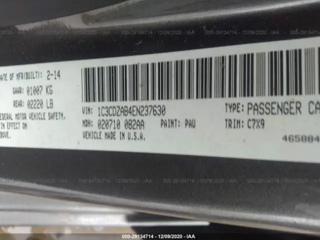 DODGE AVENGER 2014 SE 2.4L I4 FI DOHC 16V NF4 VIN: 1C3CDZAB4EN237630