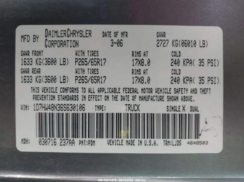 1D7HW48N36S630106