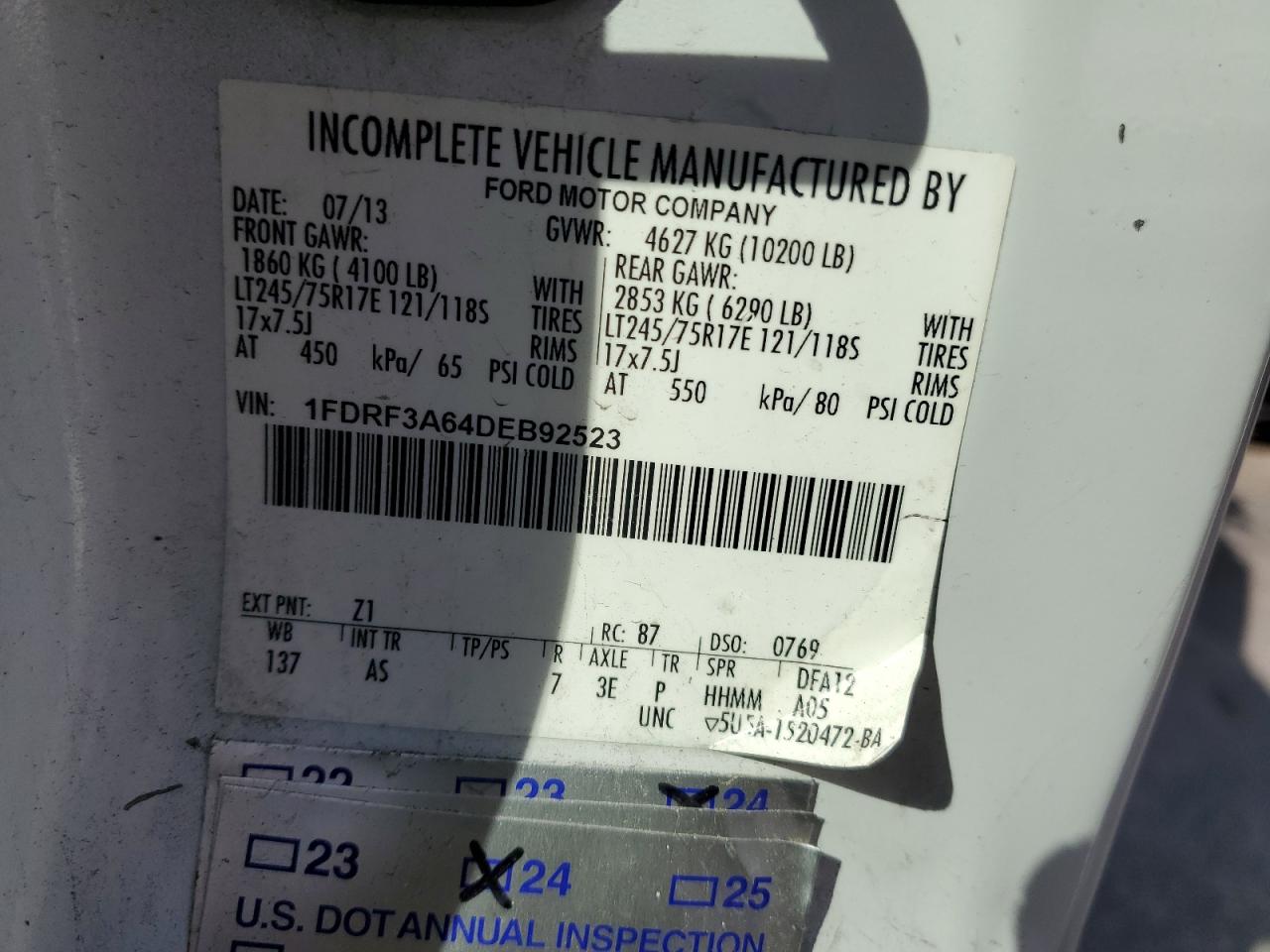 FORD F350 SUPER DUTY - SINGLE REAR WHEEL 2013