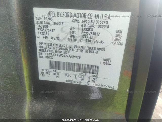 FORD F-150 2004 F-SERIES 4.6L 281 EFI V8 engine VIN: 1FTRX14W24NA49829