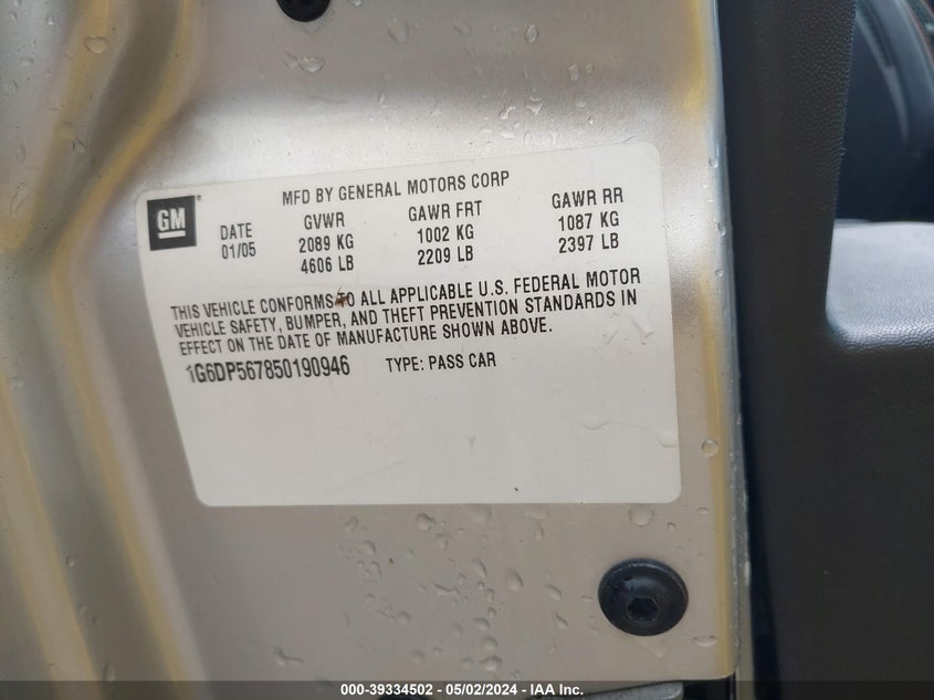 CADILLAC CTS 2005 STANDARD Silver 3.6L V-6 DOHC, VVT, 255HP VIN: 1G6DP567850190946