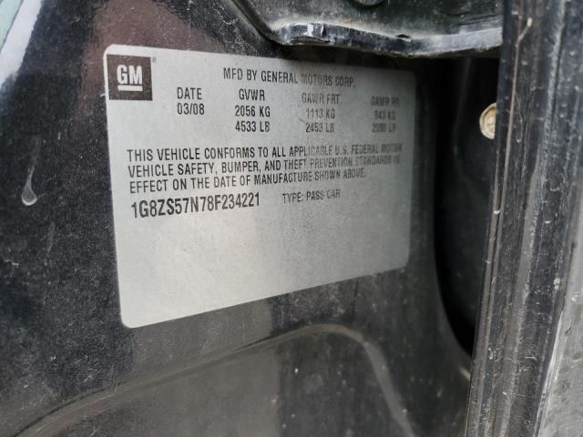SATURN AURA 2008 XE BLACK 3.5L 6 VIN: 1G8ZS57N78F234221