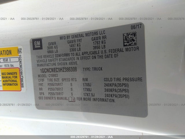 CHEVROLET SILVERADO 1500 2017 WORK TRUCK/LS/FLEET/BASE 5.3L V8 FI OHV 16V NF2 VIN: 1GCNCNEC9HZ386308