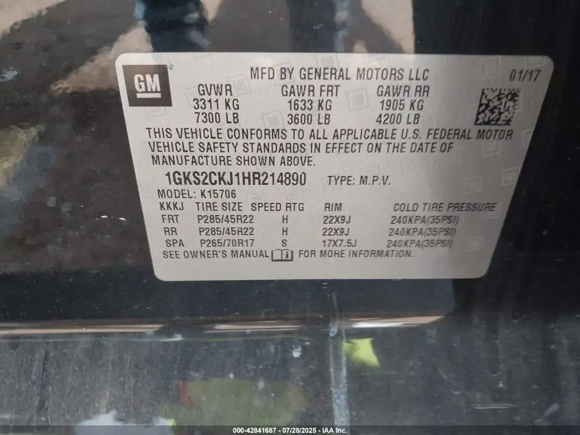 GMC YUKON 2017 DENALI Black 6.2L V-8 DI, VVT, 420HP VIN: 1GKS2CKJ1HR214890