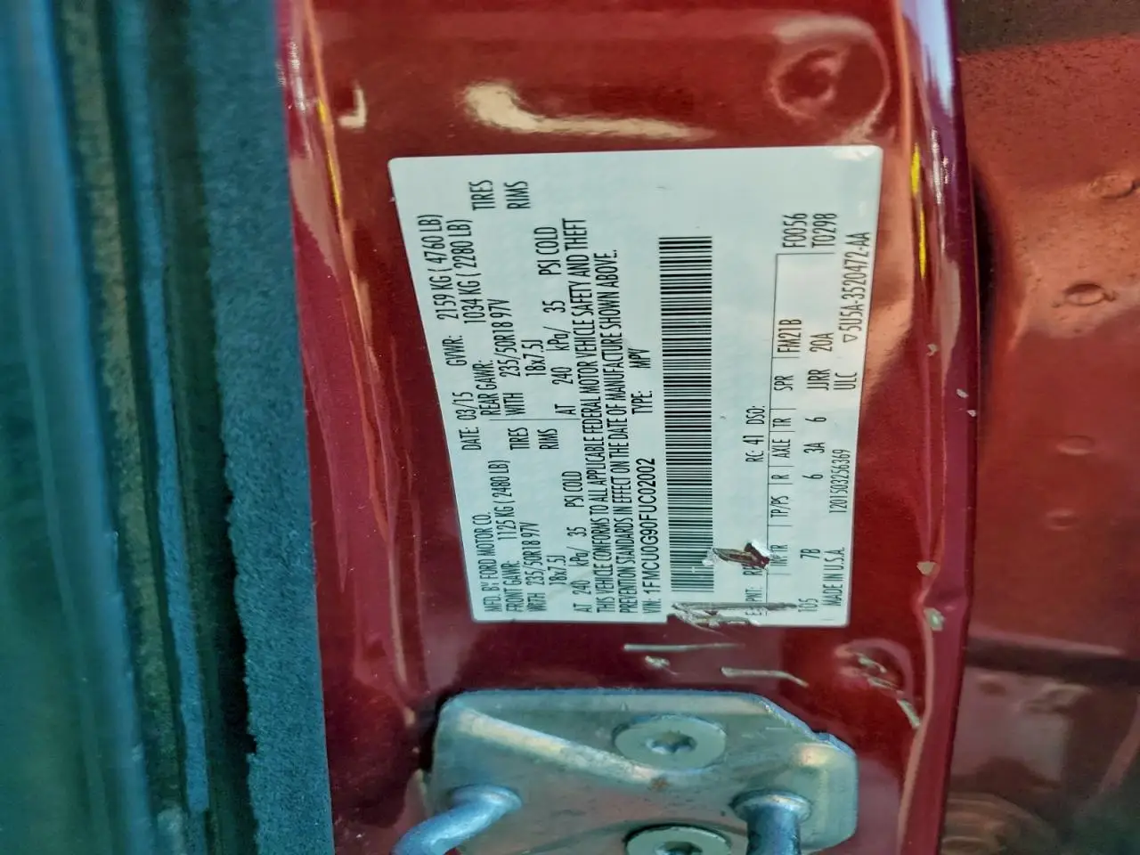 FORD ESCAPE 2015 SE RED 2.0L 4 VIN: 1FMCU0G90FUC02002