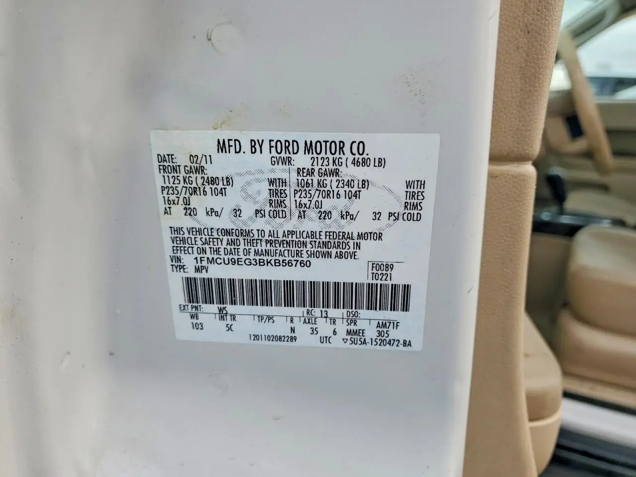 FORD ESCAPE 2011 LIMITED WHITE 3.0L 6 VIN: 1FMCU9EG3BKB56760