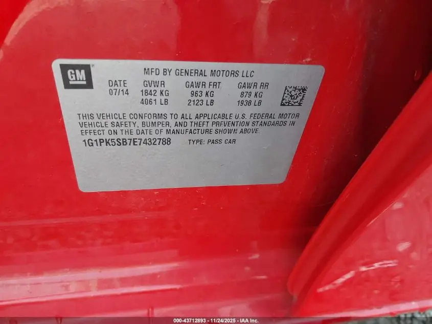 CHEVROLET CRUZE 2014 LT 1.4L I-4 DOHC, VVT, turbo, 138HP VIN: 1G1PK5SB7E7432788