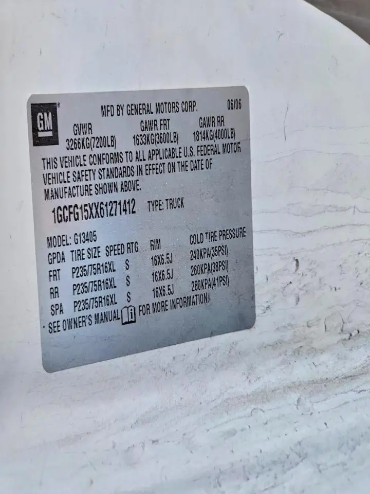 CHEVROLET EXPRESS 2006 G1 WHITE 4.3L 6 VIN: 1GCFG15XX61271412
