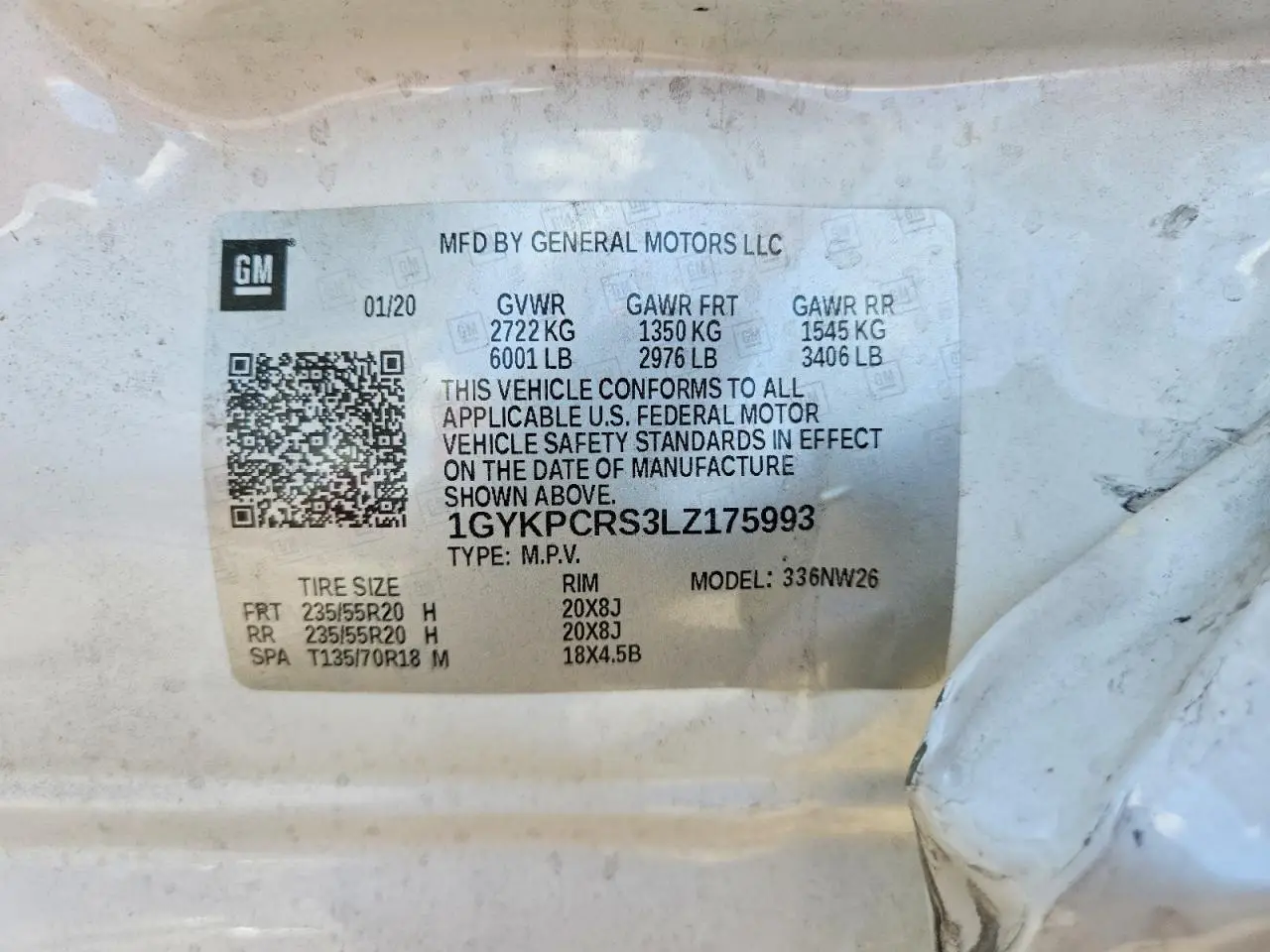 CADILLAC XT6 2020 PREMIUM LUXURY WHITE 3.6L 6 VIN: 1GYKPCRS3LZ175993