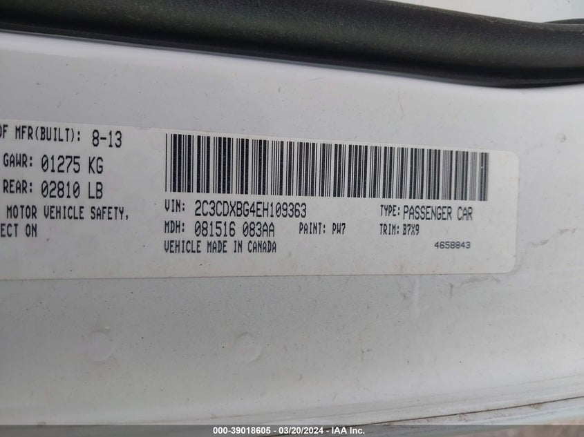 DODGE CHARGER 2014 SE 3.6L V6 FI DOHC 24V NF4 VIN: 2C3CDXBG4EH109363