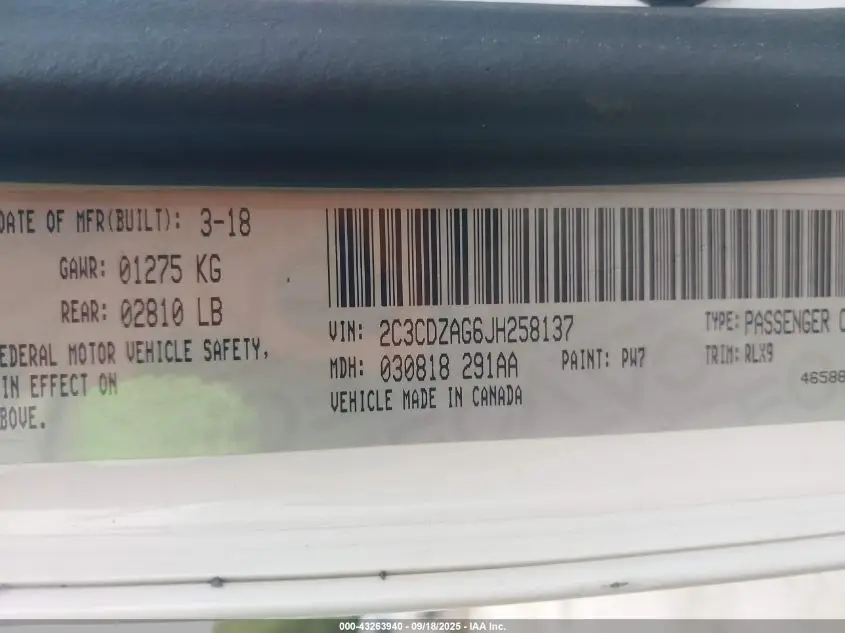 DODGE CHALLENGER 2018 SXT PLUS White 3.6L V-6 DOHC, VVT, 305HP VIN: 2C3CDZAG6JH258137