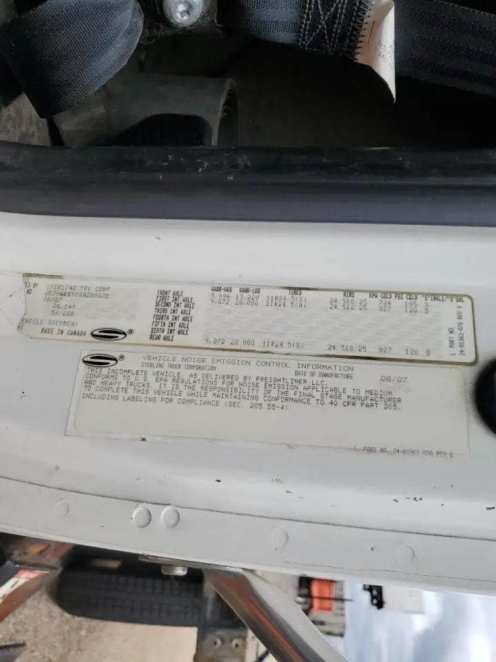 STERLING LT 8500 2008 LT WHITE 7.2L 6 VIN: 2FZHAWBS08AZ08078