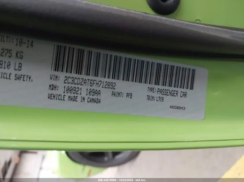 DODGE CHALLENGER 2015 R/T Green 5.7L V-8 VVT, 375HP VIN: 2C3CDZAT6FH712892
