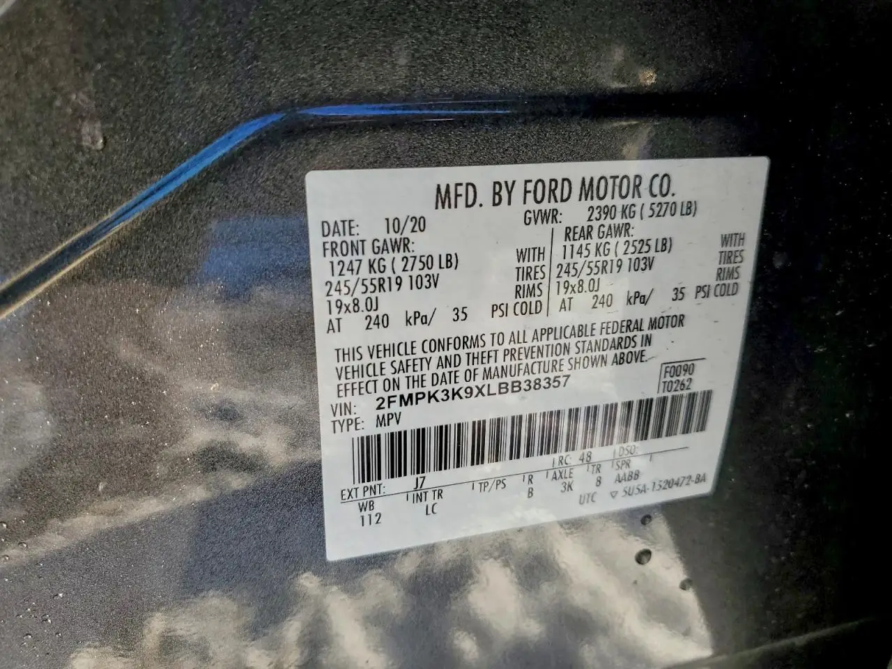 FORD EDGE 2020 TITAN GRAY 2.0L 4 VIN: 2FMPK3K9XLBB38357