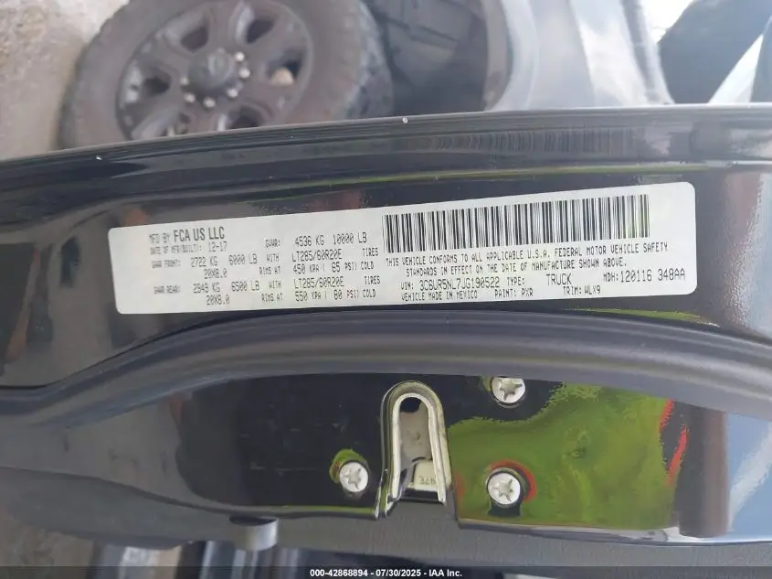 RAM 2500 2018 LARAMIE 4X4 6'4 BOX Black 6.7L I-6 DI, turbo, 370HP VIN: 3C6UR5NL7JG190522