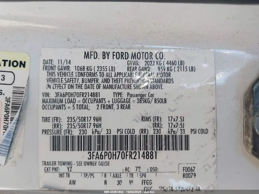 3FA6P0H70FR214881 VIN decoding