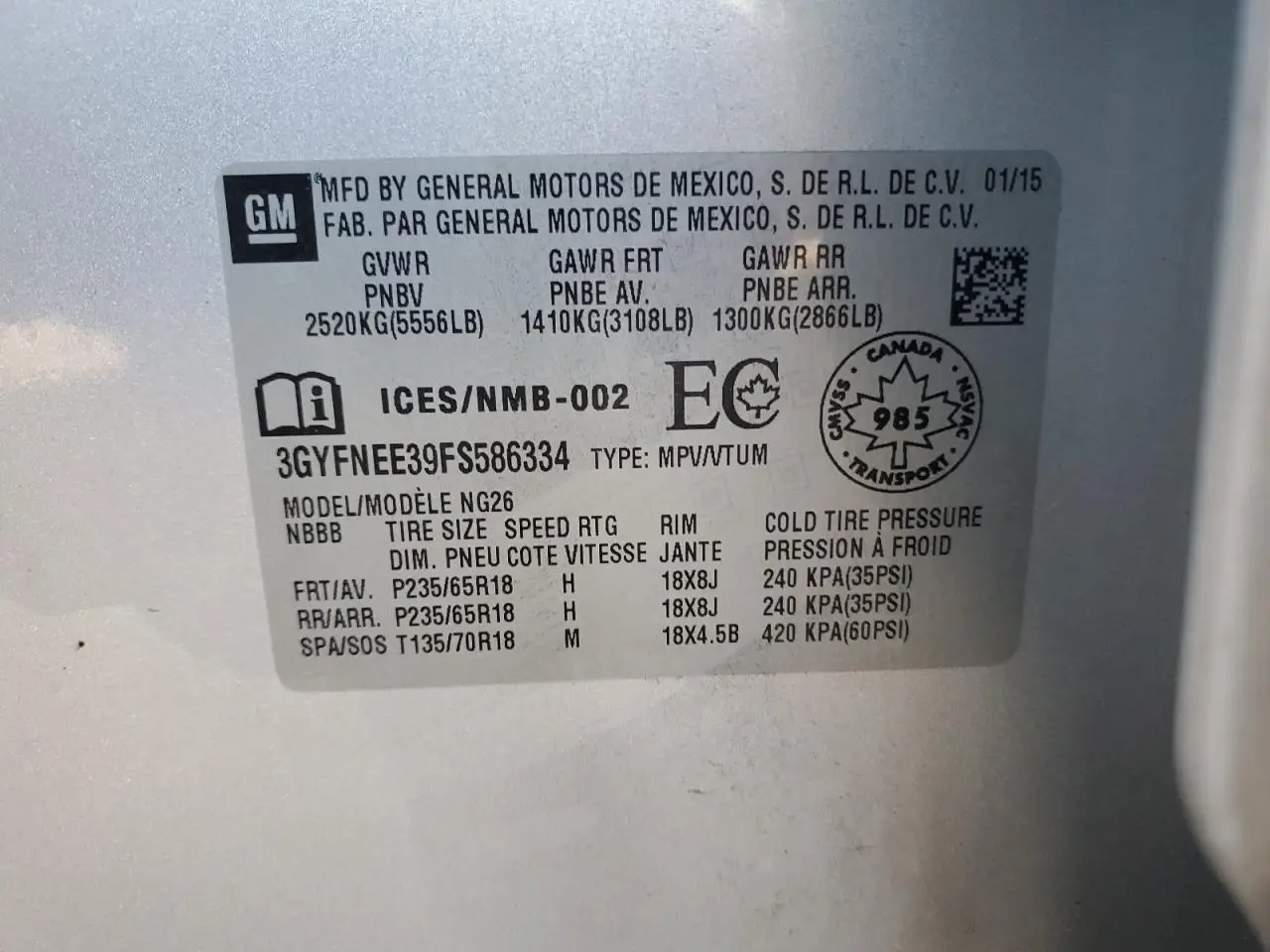 CADILLAC SRX 2015 LUXURY SILVER 3.6L 6 VIN: 3GYFNEE39FS586334