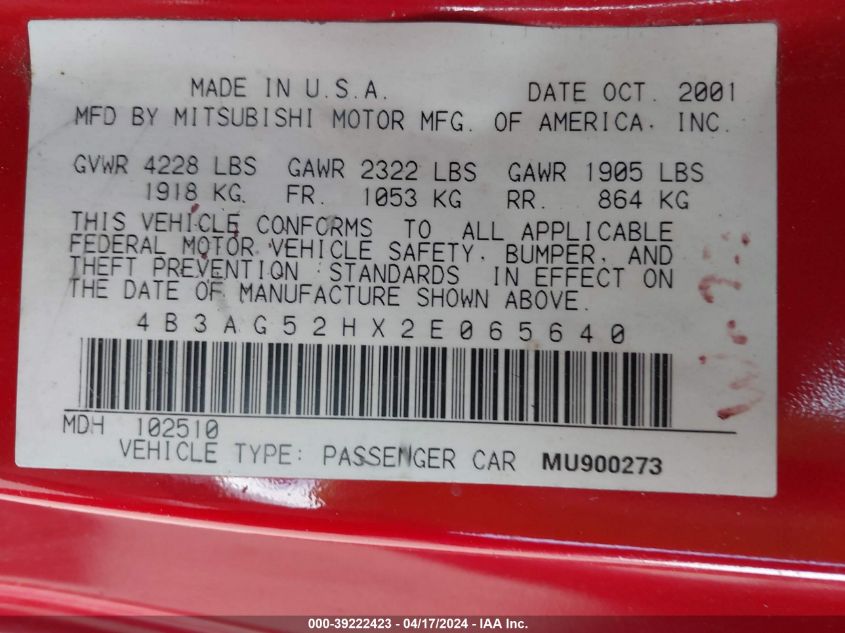 4B3AG52HX2E065640 VIN decoding