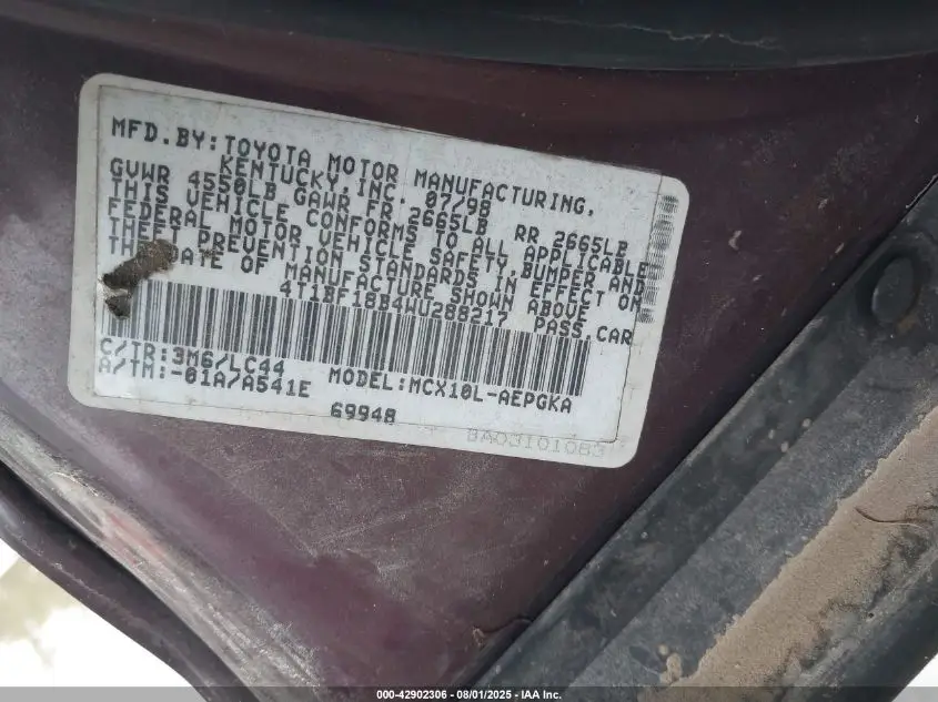 TOYOTA AVALON 1998 XLS Burgundy 3.0L V-6 DOHC, 200HP VIN: 4T1BF18B4WU288217