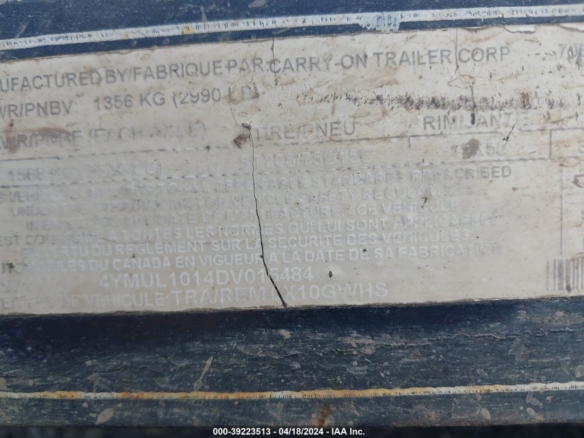 CARRY ON UTILITY TRAILER 2013 Black VIN: 4YMUL1014DV015484