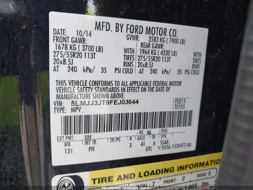LINCOLN NAVIGATOR L 2015 L 3.5L V-6 DI, DOHC, VVT, turbo, 380HP VIN: 5LMJJ3JT9FEJ03644