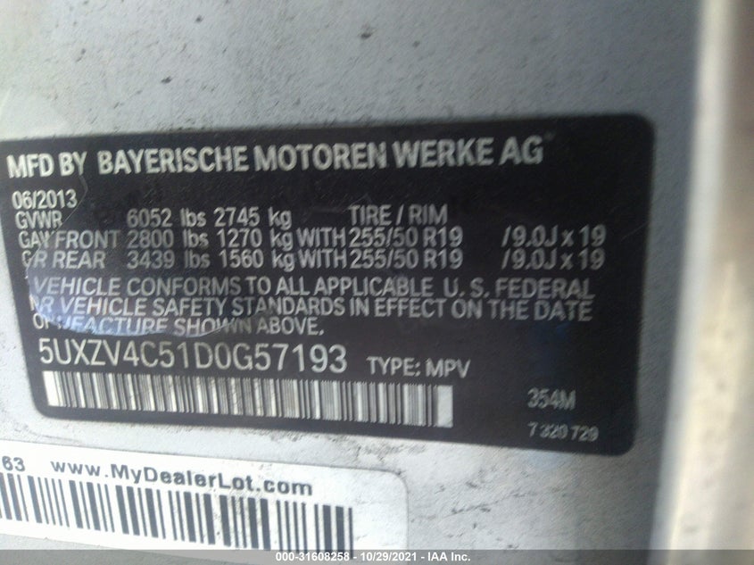 BMW X5 2013 XDRIVE35I Unknown 3.0-LITER, 300-HORSEPOWER VIN: 5UXZV4C51D0G57193