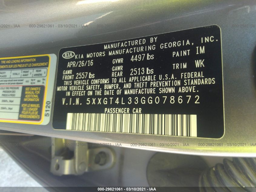 KIA OPTIMA 2016 LX Gray 2.4L DOHC I4 GDI VIN: 5XXGT4L33GG078672
