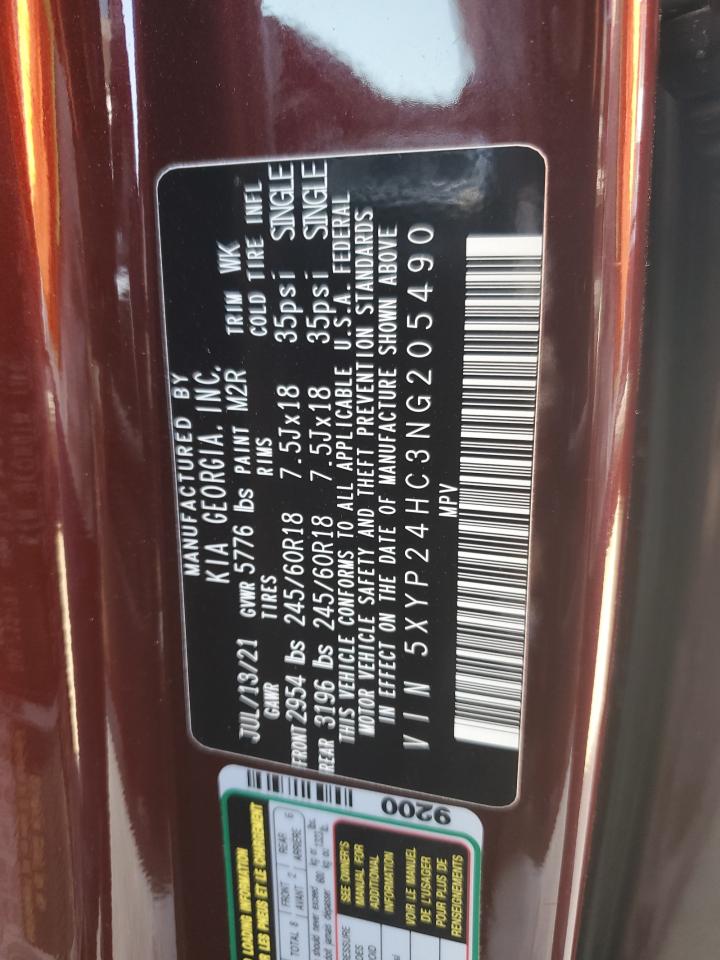 KIA TELLURIDE 2022 LX BURGUNDY 3.8L 6 VIN: 5XYP24HC3NG205490