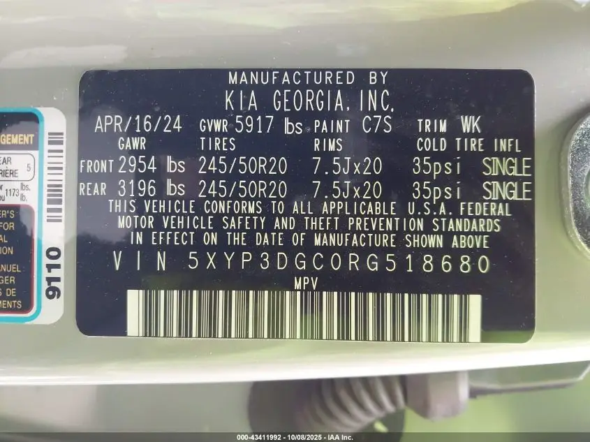 KIA TELLURIDE 2024 EX X-LINE Blue 3.8L V-6 DI, DOHC, VVT, 291HP VIN: 5XYP3DGC0RG518680