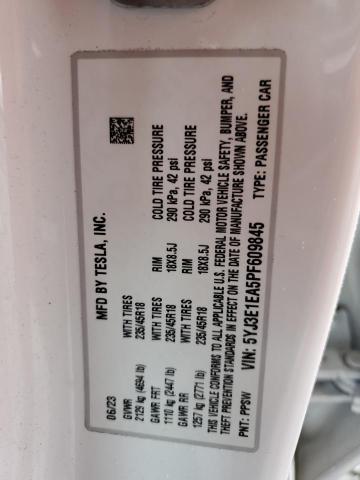 TESLA MODEL 3 2025 WHITE VIN: 5YJ3E1EA5PF609845
