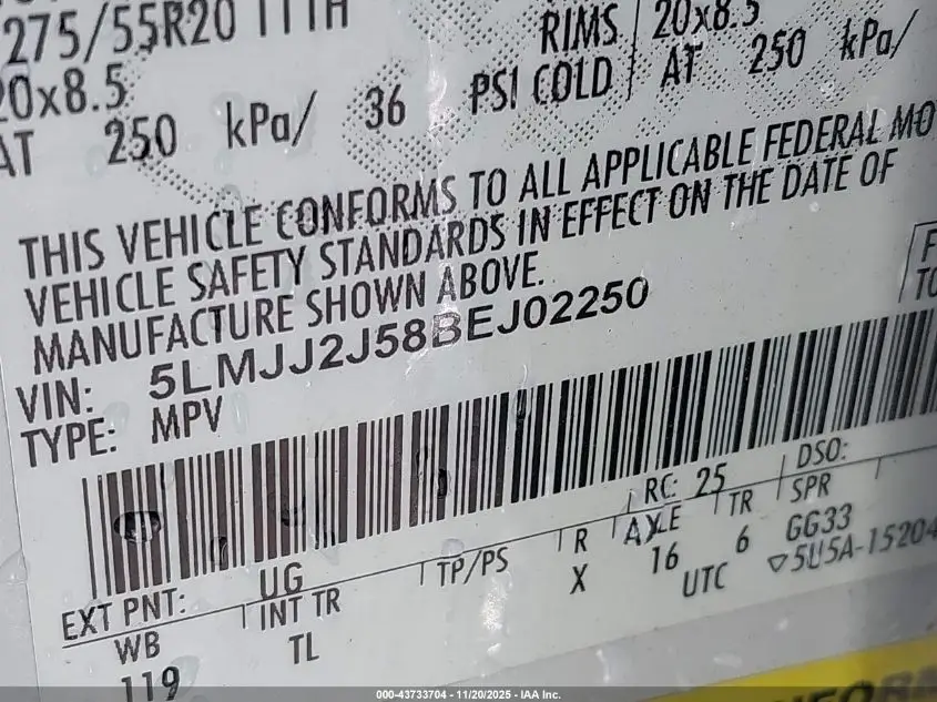LINCOLN NAVIGATOR 2011 5.4L V-8 VVT, 310HP VIN: 5LMJJ2J58BEJ02250