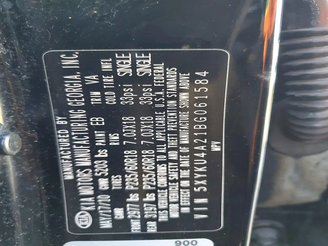 KIA SORENTO 2011 EX BLACK 3.5L 6 VIN: 5XYKU4A21BG061584