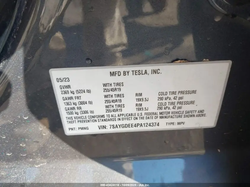 TESLA MODEL Y 2023 AWD/LONG RANGE DUAL MOTOR ALL-WHEEL DRIVE Gray U U VIN: 7SAYGDEE4PA124374