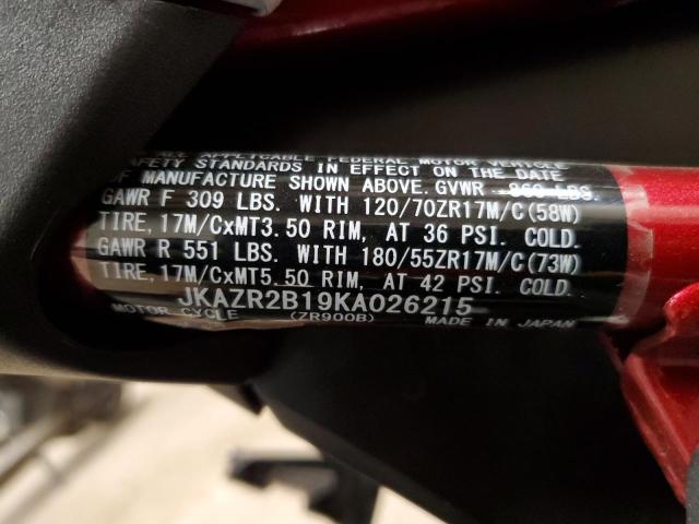 KAWASAKI Z/ZR 1000 2019 ZR900 GRAY 4 VIN: JKAZR2B19KA026215