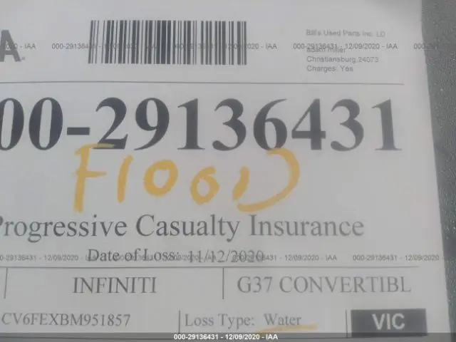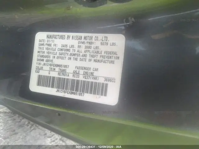 INFINITI G37 CONVERTIBLE 2011 3.7L DOHC SMPI 24-valve V6 VIN: JN1CV6FEXBM951857