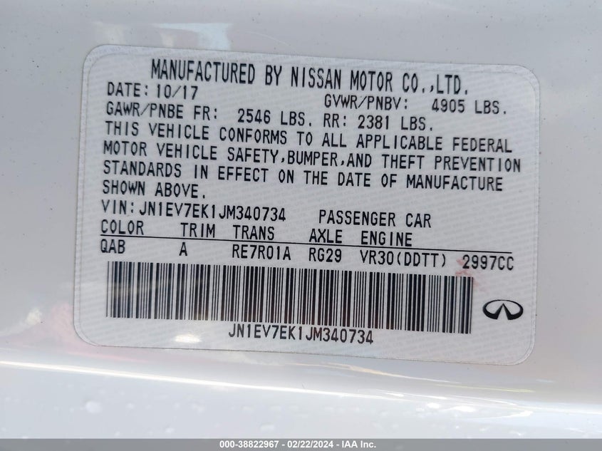 INFINITI Q60 2018 3.0T SPORT White 3.0L V-6 DI, DOHC, VVT, turbo, 300HP VIN: JN1EV7EK1JM340734