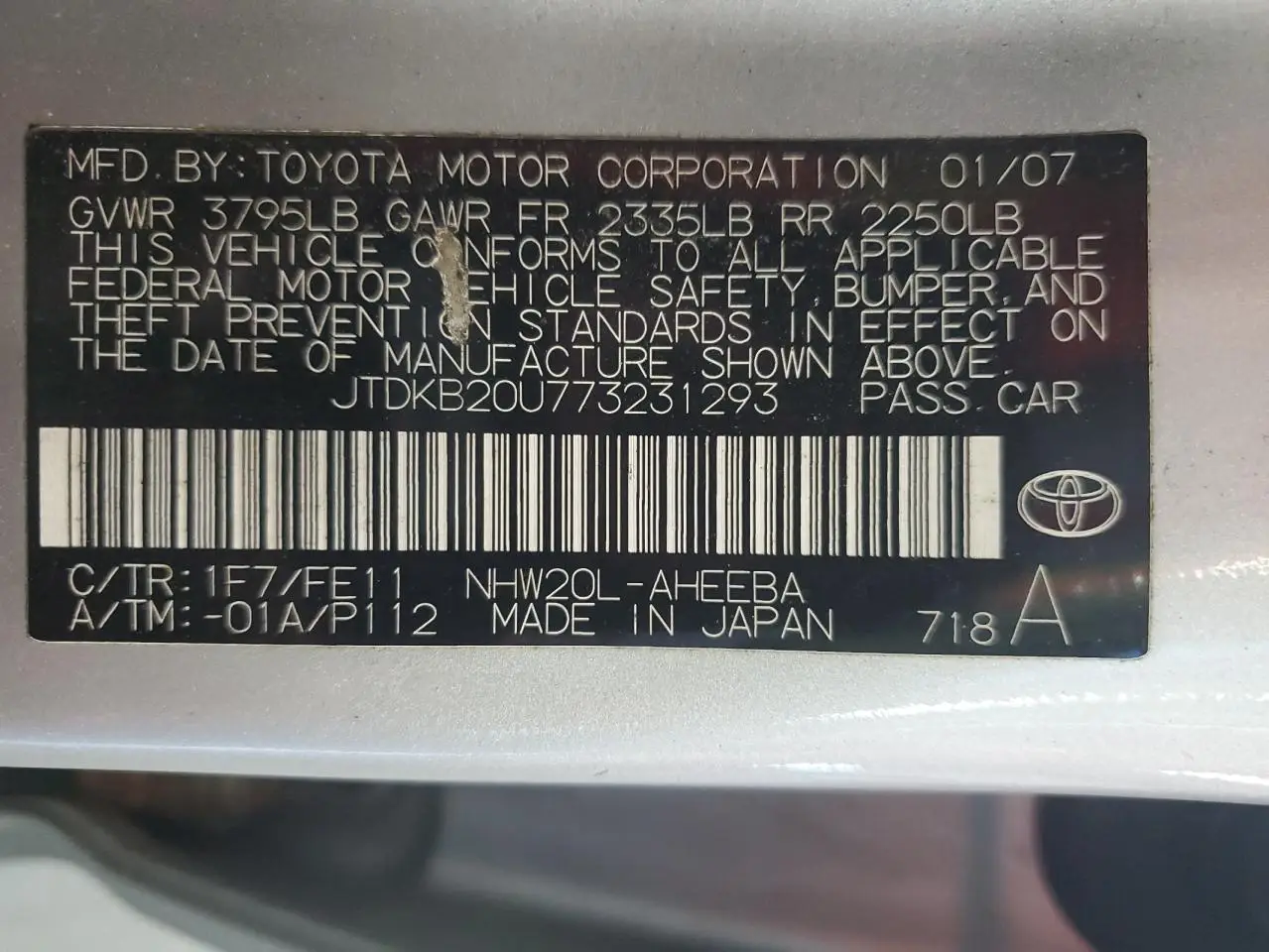 TOYOTA PRIUS 2007 NHW20L GRAY 1.5L 4 VIN: JTDKB20U773231293