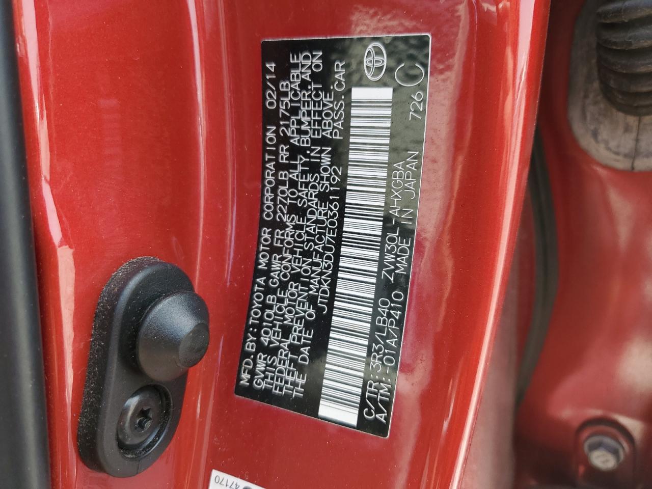 TOYOTA PRIUS 2014 ZVW30L RED 1.8L 4 VIN: JTDKN3DU7E0361192
